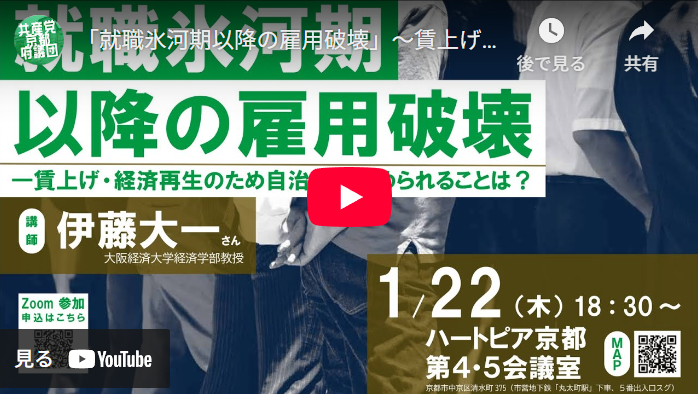 - 【動画公開】就職氷河期以降の雇用破壊~賃上げ・経済再生のために自治体に求められることは~