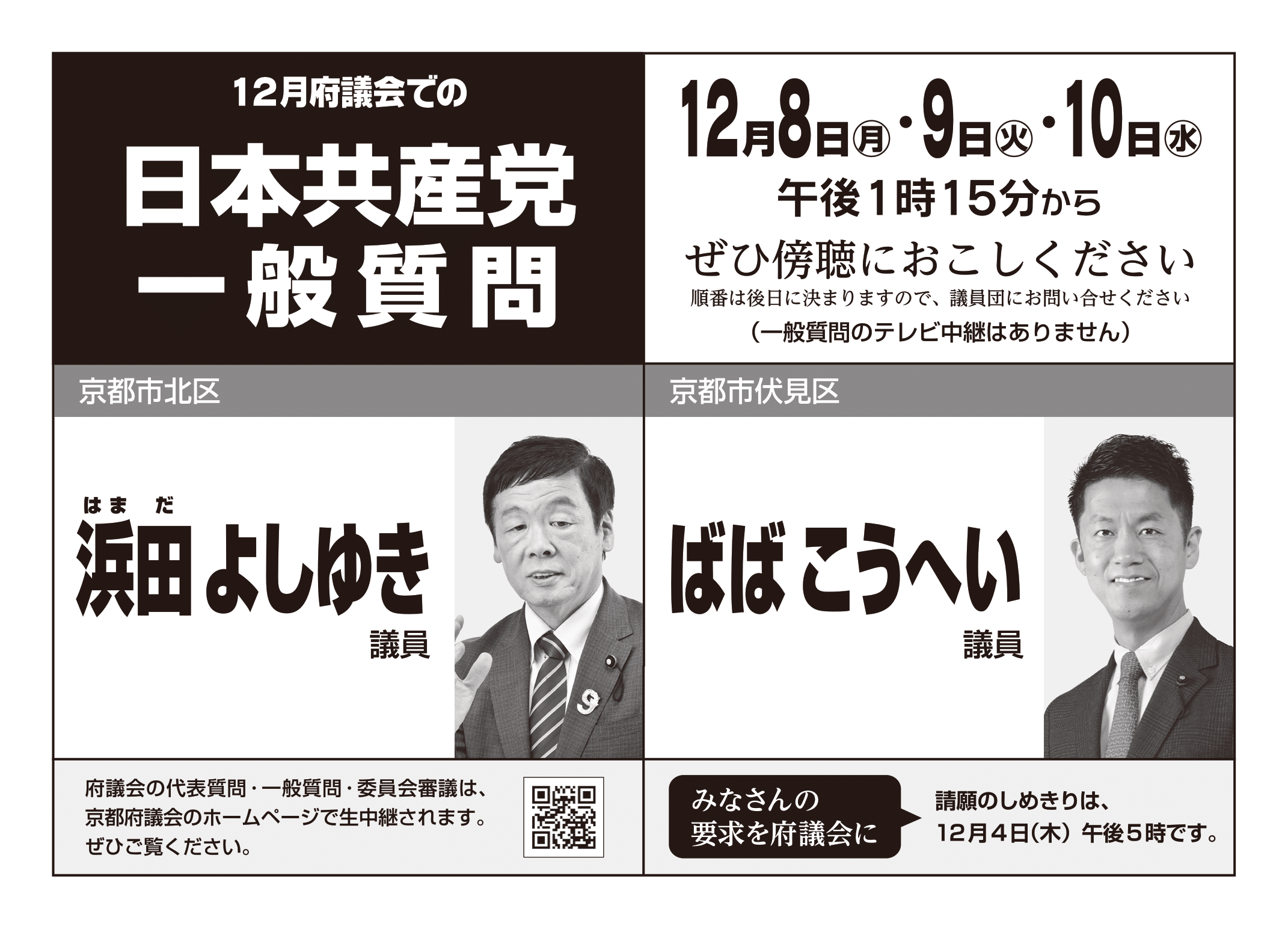 📡インターネット中継もあります▶▶▶https://gikai.congress-streamsp.jp/KyotoPrefGikai/liveselect.asp ※リンク先の「本会議」をクリックしてください。
